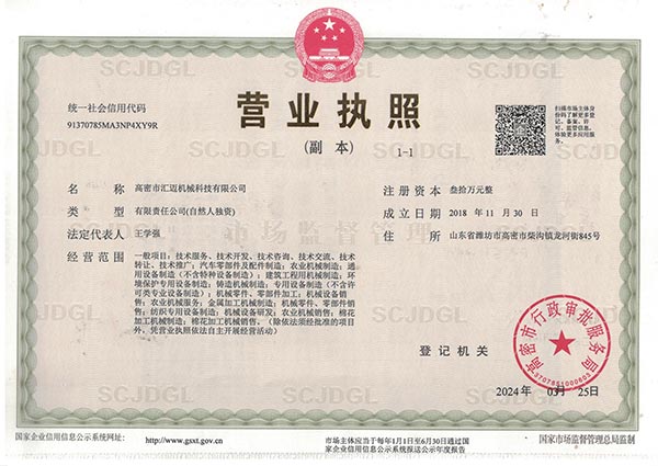名 稱 高密市匯邁機(jī)械科技有限公司